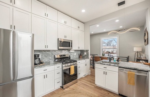 Walking distance from Downtown Denver, this charming bungalow is your dream rental. Open living areas, ample parking, and a remodeled kitchen. The stunning bathroom showcases new tile floors and a walk-in shower. Upstairs, a large living room, dining area, and two bedrooms await. Work from home with our sit-to-stand desk, monitor, and super fast wifi. A convenient mudroom leads to a patio and off street parking. The finished basement features a bedroom, bathroom, and stacked laundry.