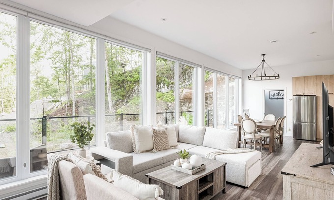 Close to rock climbing, hiking trails, and more, this family-friendly chalet brings it all within reach. Thanks to the convenient onsite parking, you can either leave your vehicle behind and enjoy a short 5-minute walk to Le P'tit Train du Nord, or easily tackle the quick 4-minute drive to La Conception Park.