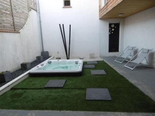 Offering a garden, Le clos d'Ondres-Spa provides accommodations in Sarrant. Spa facilities is available for guests. The accommodation offers a hot tub, free Wifi throughout the property, and full-day security. The villa consists of 3 bedrooms, a living room, a fully equipped kitchen with a dishwasher and a coffee machine, and 1 bathroom with a walk-in shower and bathrobes. Towels and bed linen are featured in the villa. For added privacy, the accommodation features a private entrance. You can play table tennis, darts, and tennis at the villa, and bike rental is available. Guests at Le clos d'Ondres-Spa can enjoy hiking and walking tours nearby, or make the most of the sun terrace. Toulouse-Blagnac Airport is 25 miles away, and the property offers a paid airport shuttle service.