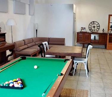 Le Clos des Collières offers accommodations in Marcollin, 23 miles from Vienne Roman Theater and 23 miles from Vienne Train Station. This property offers access to a balcony, a pool table, free private parking, and free Wifi. The vacation home also offers facilities for disabled guests. Providing a terrace and pool views, the spacious vacation home includes 5 bedrooms, 2 living rooms, flat-screen TV, an equipped kitchen, and 5 bathrooms with a shower. Towels and bed linen are provided in the vacation home. The property has an outdoor dining area. For guests with children, the vacation home provides an indoor play area, outdoor play equipment, and a baby safety gate. Guests can enjoy the outdoor swimming pool and garden at Le Clos des Collières. Gallo-Roman Museum is 23 miles from the accommodation, while Col de Parménie is 23 miles away. Alpes–Isère Airport is 13 miles from the property.