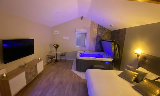 25 miles from Rouen Kindarena Sports Hall in Louvetot, Le Cocoon d'Emy features accommodations with access to a sauna and hot tub. This property offers access to a terrace, free private parking, and free Wifi. Rouen-Rive-Droite Train Station is 27 miles from the bed and breakfast and Hotel de ville de Soteville Station, Rouen is 28 miles away. The spacious bed and breakfast includes a fully equipped kitchenette with a microwave and a toaster, as well as a coffee machine. A private entrance leads guests into the bed and breakfast, where they can enjoy some wine or champagne and chocolates or cookies. The property has an outdoor dining area. Notre-Dame Cathedral of Rouen is 27 miles from the bed and breakfast, while Voltaire Station, Rouen is 27 miles from the property. Deauville - Normandie Airport is 41 miles away.