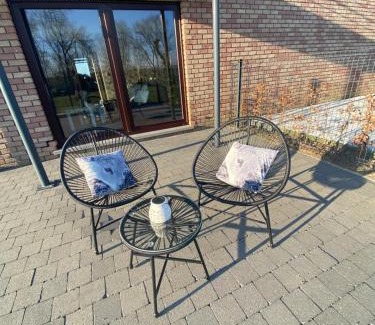 BathroomToilet, Private bathroom, Towels/Sheets (extra fee), Body soap, Towels, Toilet paper, Shampoo, ShowerMedia & TechnologyStreaming service (like Netflix), Flat-screen TV, TVKitchenWine glasses, Stovetop, Dishwasher, Kitchenware, Electric kettle, Oven, Coffee machine, Dining table, Microwave, Kitchen, RefrigeratorGeneralSmoke Alarm, Heating, Fire extinguisherViewGarden view, ViewLiving AreaDining areaBedroomChildrens' cribs, Wardrobe or closetOutdoorsOutdoor dining area, Outdoor furniture, TerraceAccessibilityEntire unit located on ground floorBuilding CharacteristicsSemi-detachedFood & DrinkBottle of water |