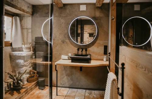 The pleasure of a modern bathroom, the authenticity of centuries-old materials, the combination of comfort and old stones for a timeless stay...
