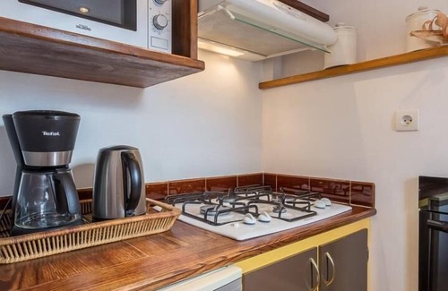 Independent house located on a vast plot of 2000 m2 on which is the studio of the owner, visual artist. Ground floor: living room and kitchen area, bathroom (shower and WC). On the 1st floor: 1 bedroom (1 double bed) with its separate WC. Vast enclosed grounds of 2000 m2, fitted and covered terrace, vegetable garden. Sheets included and beds made. Ski Le Granier 1km, Le Désert d'Entremont 6km, St-Pierre de Chartreuse/Planolet 17km. Body of water and swimming pool 19km. Former EDF transformer that has become a family home, atypical accommodation due to its original use. Tastefully decorated in a contemporary shabby style. Next to the workshop of the owner, visual artist. 1.4 km from the heart of the village of Entremont-le-Vieux and 1 km from the ski slopes. South hillside. Typical residential hamlet in the heart of the Chartreuse Regional Natural Park. Good comfort. Ultra cozy. Very charming. Pleasant preserved natural setting. Large landscaped plot with covered terrace and vegetable garden.