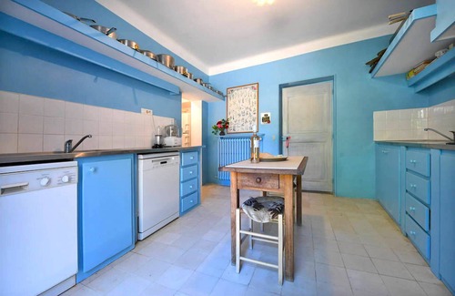 The house is surrounded by a large garden with a beautiful natural swimming-pool. 7 beautiful bedrooms with large comfortable beds that can accommodate up to 13 people. 5 beautiful en-suite bathrooms with shower or bathtub, including a bathroom with a sauna. Fully equipped kitchen with oven, washing machine, dishwasher, coffee machine, toaster, fridge, freezer, kettle. Several lounges on the ground floor with piano or library, with Wifi internet. The terrace has been furnished with tables and chairs. The house is ideal to come and stay several days and enjoy the many charms of the region.
