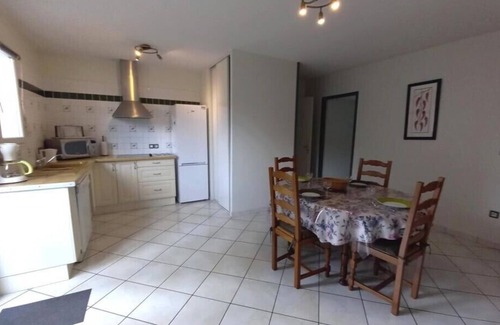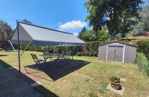 A few steps from Lac de la Glacière, ideal for walks or fishing, 30 minutes from the ocean and 5km from the leading spa town in France. Adjoining gîte to another gîte including: living room with kitchen area, pantry, lounge, 2 bedrooms (1 double bed, 2 single beds), bathroom. Washing machine, dishwasher, reversible air conditioning, WIFI connection, TV, microwave, baby equipment on request. Electric heating. Green setting, enclosed land 150m². Garden furniture, barbecue, garden shed. Cure, Préchacq and Dax spa resort, shuttle. Tourism and Disability Label. Possibility of 2 baby beds, 2 high chairs and 2 booster seats (chair) Beyond an animal, consult us.