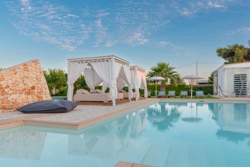 Le Grancìe in Porto Cesareo provides accommodations with a seasonal outdoor swimming pool, free bikes, and a garden. Both free Wifi and parking on-site are available at the farm stay free of charge. On clear days, guests can head outside to enjoy the farm stay's outdoor fireplace, or simply kick back and relax. The farm stay will provide guests with air-conditioned units offering a wardrobe, a safety deposit box, a flat-screen TV, and a private bathroom with a bidet. There's also a well-equipped kitchen in some units equipped with a stovetop and kitchenware. At the farm stay, all units include bed linen and towels. Buffet and continental breakfast options with warm dishes, fresh pastries, and fruit are available. There is a coffee shop, and packed lunches are also available. For guests with children, Le Grancìe provides outdoor play equipment. An indoor play area is also available at the accommodation, while guests can also relax on the sun terrace. Piazza Sant'Oronzo is 18 miles from Le Grancìe, while Piazza Mazzini is 18 miles from the property. Brindisi - Salento Airport is 44 miles away, and the property offers a paid airport shuttle service.