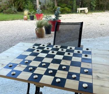 Offering a garden, Le Grand Gîte des Moyens-Ducs provides accommodations in Josnes. The air-conditioned accommodation is 7.1 miles from Chateau de Talcy, and guests can benefit from on-site private parking and complimentary Wifi. Chateau de Meung sur Loire is 9.4 miles from the vacation home and Château de Chambord is 16 miles away. Providing a terrace and garden views, the spacious vacation home includes 5 bedrooms, a living room, flat-screen TV, an equipped kitchen, and 5 bathrooms with a walk-in shower. Towels and bed linen are provided in the vacation home. The property has an outdoor dining area. There is an on-site bar. You can play billiards, table tennis, and darts at the vacation home. Chateau de Villesavin is 23 miles from Le Grand Gîte des Moyens-Ducs, while Cathedral of St. Louis is 24 miles away. Tours Loire Valley Airport is 53 miles from the property.