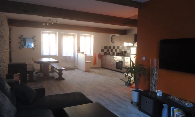 Le Grison is located in Lalheue, just 13 miles from Chalon sur Saône Exhibition Center and 29 miles from Mâcon Exhibition Center. Both free Wifi and parking on-site are accessible at the vacation home free of charge. Outdoor seating is also available at Le Grison. This vacation home includes 3 bedrooms, a living room and a flat-screen TV, an equipped kitchen with a dining area, and 1 bathroom with a walk-in shower and a washing machine. Towels and bed linen are available in the vacation home. For added privacy, the accommodation has a private entrance and soundproofing. For those times when you'd rather not eat out, you can cook on the barbecue. For guests with children, the accommodation features outdoor play equipment. Guests at Le Grison can enjoy cycling and hiking nearby, or make the most of the sun terrace. Beaune Exhibition Center is 30 miles from the vacation home, while Beaune Train Station is 31 miles from the property. The nearest airport is Dole-Jura Airport, 47 miles from Le Grison.