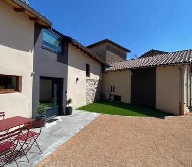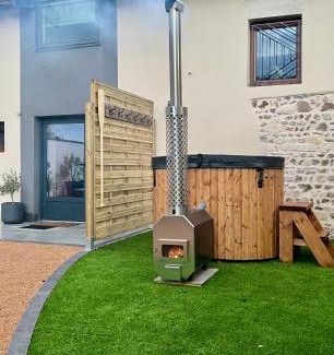 Providing a garden, Le Hameau des Bruyères provides accommodations in Cercié. The air-conditioned accommodation is 18 miles from Mâcon Exhibition Center, and guests can benefit from on-site private parking and complimentary Wifi. Guests can use the spa and wellness center with a hot tub, steam room, and open-air bath, as well as pool with a view. Featuring a terrace and inner courtyard views, the spacious apartment includes 1 bedroom, a living room, flat-screen TV, an equipped kitchen, and 1 bathroom with a walk-in shower and a hot tub. Guests can take in the ambience of the surroundings from an outdoor dining area. For added privacy, the accommodation has a private entrance and soundproofing. Breakfast can be enjoyed on-site, which includes fresh pastries and juice. For visitors looking to embark on day trips to nearby landmarks, the apartment features a selection of packed lunches. Lyon - Saint Exupery Airport is 42 miles from the property.