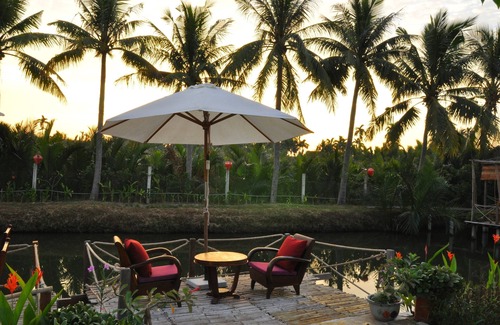 Nestled right in the heart of RUNG DUA BAY MAU (Bay Mau Water Palm forest), Jardin de Mai has has the perfect neighborhood atmosphere. You can easily walk around the small village, visit and see locals working, making crafts from bamboo, palm leafs,.. You can also have a pleasant bicycle ride to the neighbor villages with the small roads and nice rice fields.
