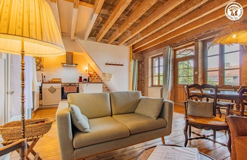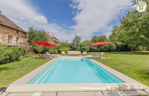 Gabrielle (French-American) & Guillaume welcome you to an authentic 19th century character farmhouse, steeped in history & very carefully restored, nestled in a quiet area a stone's throw from the vineyards, in the heart of a picturesque rural hamlet perfectly preserved. Magnificent rural & natural setting preserved all around, nestled on the wooded foothills of the Massif sud Bourgogne (rich in numerous panoramic viewpoints), at the foot of the Sully mountain protected in ZNIEFF (home to an unusual "green theater" of ancient type), in the hollow of the verdant valley of the Grosne (classified "Natura 2000 Zone" for its rare ecosystems), gentle rolling countryside mixing hillsides of vineyards, wild forests & hedged meadows dotted with bucolic rivers & ponds. Very comfortable cottage. Warm, country-style character with a "family home" feel, enhanced by the exotic soul of the original building (stone walls and lintels, fireplace mantel, molded closet doors, period timber framing...). Cozy atmosphere. Lots of charm. Pleasant balcony-terrace sheltered under a traditional "Mâconnaise gallery". Intimate enclosed garden of 2500m², carefully lawned, with flowers and trees, housing a beautiful heated swimming pool (4x8m), a herb garden, a mini fruit orchard (cherry, plum, peach, apple, pear trees... / picking possible) & a chicken coop. Composition: Gîte in the owners' house (complete independence). Wi-Fi (fiber). Gas central heating. Shared laundry room on the ground floor. Gîte on 2 levels (access via external staircase). 1st floor: living room-kitchen-lounge, bedroom (double bed 160x200cm) with private bathroom (shower/WC). 2nd floor: 2 bedrooms (double bed 160x200cm in each), bathroom (bath/WC). Sheltered balcony-terrace + heated swimming pool (4x8m / open from May to September) + bicycle storage + carport (2 spaces) + private parking. Enclosed grounds (2500m²) shared (garden + courtyard). Amenities including supermarkets 7.5 km away.