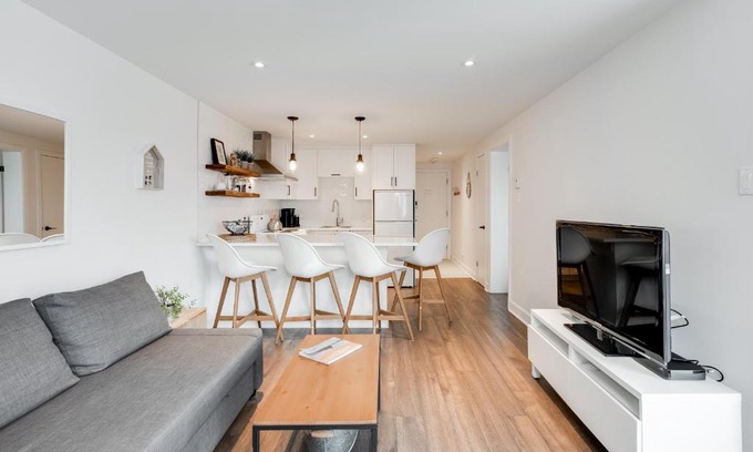Le Lightroom by Gestion ELITE offers accommodations in Mont-Tremblant, 4.3 miles from Mont Tremblant Casino and 3.1 miles from Brind’O Aquaclub. This property offers access to a terrace, free private parking, and free Wifi. The apartment features an outdoor swimming pool with a fence, as well as a hot tub and a 24-hour front desk. The air-conditioned apartment consists of 1 bedroom, a living room, a fully equipped kitchen with a dishwasher and a coffee machine, and 1 bathroom with an a bath or shower and a hair dryer. Guests can take in the views of the mountain from the balcony, which also has outdoor furniture. For added privacy, the accommodation features a private entrance. Mont-Tremblant National Park is 14 miles from the apartment, while Golf le diable is 4.3 miles from the property.