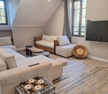 Le Loft du Centre Ville is located in Aix-les-Bains, just 10 miles from SavoiExpo and 12 miles from Fountain of Elephants. Guests staying at this apartment have access to a balcony. Free Wifi is available throughout the property and Bourget Lake is 3.7 miles away. The air-conditioned apartment consists of 4 bedrooms, a living room, a fully equipped kitchen with a dishwasher and a coffee machine, and 3 bathrooms with a bath and a hair dryer. Towels and bed linen are offered in the apartment. The accommodation is non-smoking. Congress Centre is a 5-minute walk from the apartment, while Chambéry Train Station is 11 miles from the property. Chambéry-Savoie Airport is 4.3 miles away.