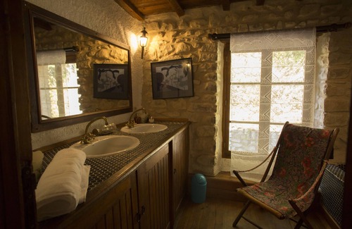 On the first floor at the Drome section of the house, there is a double room with king size bed, and a twin room. These bedrooms share a bathroom with tiled shower and bath and double sink. There is a separate loo. This is perfect for a family.