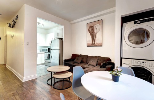 Welcome to this enchanting apartment in Montréal. This beautiful property features 2 cozy bedrooms with queen beds, perfect for a good night's sleep after exploring the city. With amenities like a washing machine, WiFi, and AC, guests can relax and unwind in this excellent space. A great place to call homebase while you're away, we hope you enjoy your stay.