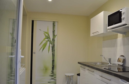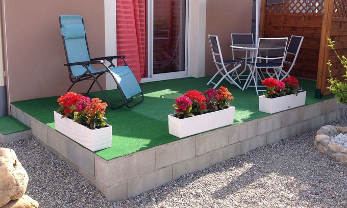 New studio of 33 m2 including a kitchen area with ceramic hob, microwave, coffee maker, kettle, toaster, fridge, iron and ironing board, bathroom with shower, sink area, toilet, hairdryer, bedroom with 1 bed 2 places (160x180), large wardrobe, lounge area (sofa bed BZ 2 places in 160) television. Cot available as well as changing mat, terrace in front of main room with garden furniture as well as another terrace with electric barbecue, outdoor table and chair, parasol, lounge chair, clothes line.