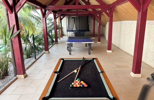 Relax by the heated pool or sip a drink in the garden of this villa, which also features a deck or patio and outdoor furniture. For a change of scenery, come inside and try your hand at table tennis and billiards, or enjoy the WiFi and DVD player.