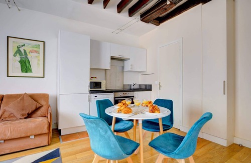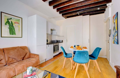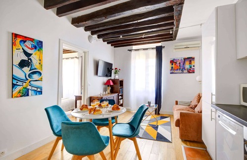 Enjoy staying in the heart of Paris’s Le Marais area with this lovely 1-bedroom, 40 square meters apartment located on the 4th floor of a secure residential building with an elevator. Self check-in starting from 3:00PM by picking up keys at a nearby shop. Wi-Fi is available, great for both work and leisure. Refundable damage deposit is required, in full accordance with platform's policies.