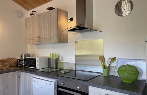 Dès votre arrivée, vous serez accueillis dans une cuisine entièrement équipée, comprenant un four, un réfrigérateur-congélateur, une plaque à induction, un micro-ondes, une cafetière filtre et un grille-pain.