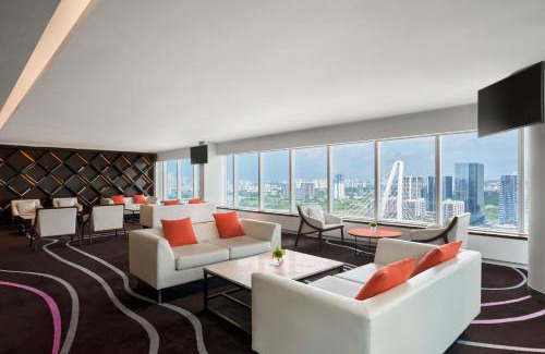 Food & DrinkMinibar, Bottle of waterBathroomHairdryer, Slippers, Toilet paper, Bathtub, Bidet, Walk-in shower, Shower, Shampoo, Conditioner, Shower cap, Bathrobe, Toilet, Private bathroom, Body soap, Towels, Free toiletries, Bathtub or shower, ToothbrushGeneralFire extinguisher, Key card access, Safe, Iron, Smoke Alarm, Ironing facilities, Carpeted, Air conditioning, Trash cansMedia & TechnologyTV, Flat-screen TV, iPod dock, Cable channels, TelephoneServicesWake-up service/Alarm clock, Wake-up service, Executive lounge accessLiving AreaDesk, SofaViewCity view, ViewBedroomWardrobe or closet, Alarm clock, LinensKitchenWine glasses, Electric kettleAccessibilityEntire unit wheelchair accessible, Accessible by elevator, Roll-in shower, Upper floors accessible by elevatorRoom AmenitiesClothes rack, AdapterPool and SpaPool towels, Pool with a viewLayoutWindowExclusive servicesFree newspapers and magazines in the executive lounge, Free gym access |