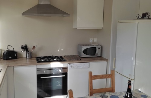 A living room and a BBQ grill are featured at this 2-bedroom, 1-bathroom rental. Connect to the WiFi, or get cozy in front of the TV. The kitchen is equipped with an oven, a stovetop, and a refrigerator, as well as a coffee maker, an electric kettle, and a microwave. And because there's access to laundry facilities, you can go a bit lighter on your packing. Other amenities include an ironing board, housekeeping, heating, and a dining table.