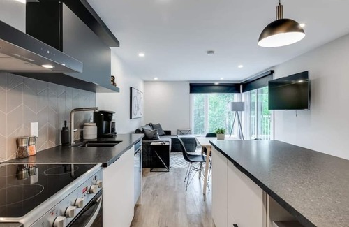 For your getaway in the heart of the Old Village of Mont-Tremblant, Le Panoramik has been completely renovated, with a modern and sophisticated interior. Heated floor in the bathroom, private terrace, surrounded by lush vegetation.