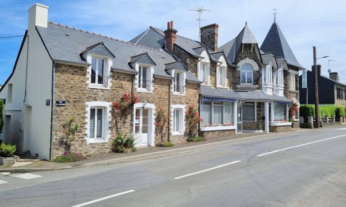 La Richardais, the small locality on the Rance river 1km south of Dinard. The residence " Le Petit Robinson" is a house divided into 8 apartments. It is located on the border of Dinard, along the coastal road that leads to Dinard. Residence "Le Petit Robinson", renovated. 8 apartments in the residence. In the resort 3 km from the centre of Dinard, 600 m from the sea, 1.4 km from the beach, on a main road. For shared use: property 850 m2 with lawn, parking. Shop 1.5 km, grocery, restaurant 50 m, bus stop "La Bodinais" 210 m, railway station "SCNF Saint-Malo" 9 km, ferry "gare maritime du Naye" 8.2 km, sandy beach "Le Prieuré" 1.4 km, indoor swimming pool 4 km. Sports harbour 2.5 km, sailing school 1.4 km, indoor tennis centre 2 km, minigolf 1 km, riding stable 2.3 km, sports centre 2.5 km, walking paths from the house 900 m. Nearby attractions: Saint-Malo 10 km, Le Grand Aquarium de Saint-Malo 6 km, Cancale 20 km, Dinan 23 km, Cap Fréhel et Fort la Latte 37 km, Le Mont Saint-Michel 60 km. Please note: no lift. The keys‘ handover takes place by the agency Interhome in Dinard, 3 km. Main road. Additional accommodations can be booked. Neighbourhood highly sensitive to noise. Quietness and good behaviour expected. Prieuré beach at 1400m, possibility of swimming only at high tide. Coastal paths within walking distance 500 meters. Busy and noisy road.