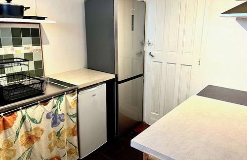 Prepare a home-cooked meal in the kitchenette, complete with an oven, a stovetop, and a refrigerator, as well as a coffee maker, an electric kettle, and a microwave. Bathroom amenities include a hair dryer, towels, and toilet paper. And because there's a washer and dryer, you can go a bit lighter on your packing. Other amenities include a fireplace, bed sheets, an ironing board, and bike storage.