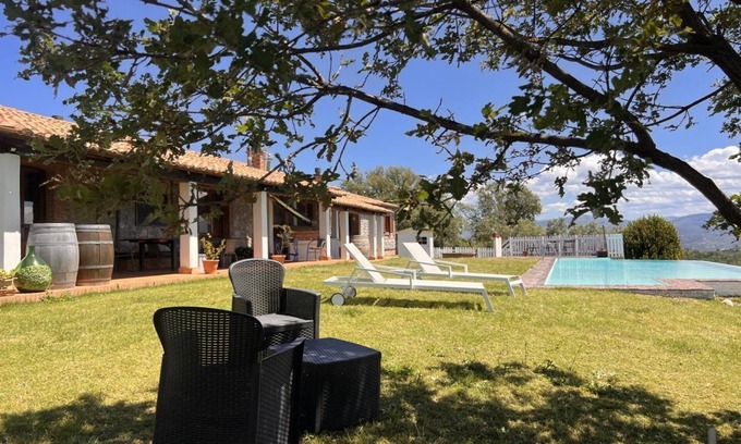 An ancient farmhouse with an infinity pool, surrounded by centuries-old vineyards, olive groves, and fruit trees. An artistic residence, located just steps from the eponymous natural winery founded by Dario Brunori (aka Brunori Sas), the farmhouse is perfect for families or friends seeking a comfortable and independent space where they can fully relax and enjoy the beauty of the countryside and its wild flora, and experience moments of serenity and sharing, even in the company of their inseparable four-legged friends.