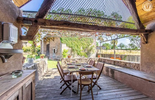 Louis welcomes you to the farm of his childhood, an authentic 18th century Burgundian farmhouse, restored according to the rules of the art. On the edge of meadows (with Charolais sheep as peaceful neighbors!), In the heart of a charming, typical and quiet little hamlet nestled on a hilly bocage plateau at the foot of the famous Butte de Suin, culminating at an altitude of 600m on the watershed between the Atlantic Ocean & the Mediterranean. Nestled on the site of an ancient Gallic city & a major Roman road, on a natural site protected for its remarkable plant and animal ecosystem (especially aquatic), this iconic panoramic sentinel of Saône-et-Loire offers a 360-degree view ° literally exceptional, up to Mont-Blanc on a clear day (a local saying says that there are 52 bell towers!). You will enjoy a delightful enclosed garden of 500m², neat & very flowery, with a double terrace (one partly sheltered, where the old bread oven used to be) and a ping-pong table ( in old barn). Superb unobstructed view of the Charollais. Magnificent panorama & landscapes. Spacious cottage of great comfort. Warm country character combined with very careful heritage restoration (beams, framework, stone walls, tiled floors, fireplace mantels, original molded doors, etc.). Soothing cozy atmosphere of a "family home". Lots of charm and character. Cozy & very cocooning. Composition: Detached house on 2 levels adjoining the owners' home (total independence without vis-à-vis). Wireless. Electric heating + wood stove. Ground floor: kitchen, living room, 1 bedroom (double bed 160x200cm), bathroom (shower), separate toilet, laundry room (access from outside). 1st floor: TV lounge on the mezzanine (sofa 2 p. 140x190cm as an extra), 2 bedrooms (2 beds 2 p. 140x190cm including 1 on mezz. / Bed 2 p. 140x190cm), shower room (shower / Wc). Double terrace + enclosed garden + bicycle room + private parking. Shops 12 km.