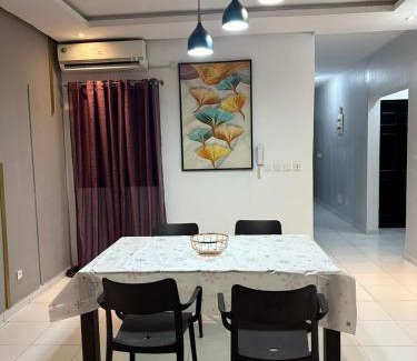 Le spacieux-Salon XXL & 2 chambres is located in Cocody, just 6 miles from Ivoire Golf Club and 6.3 miles from University of Felix Houphouet-Boigny. This property offers access to a balcony, free private parking, and free Wifi. Presidential Palace is 10 miles from the apartment. The air-conditioned apartment is composed of 2 separate bedrooms, a living room, a fully equipped kitchen with an oven and microwave, and 2 bathrooms. A flat-screen TV with satellite channels is provided. The accommodation is non-smoking. St. Paul's Cathedral is 8.9 miles from the apartment, while National Museum of Abidjan is 9.2 miles away. Félix-Houphouët-Boigny International Airport is 17 miles from the property.