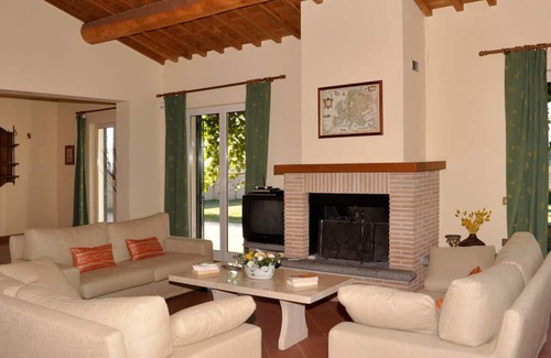 The villas have full central heating, and are provided with one highchair and one cot. Linen and bathroom towels changed weekly. Swimming pool towels provided. The price includes use of the tennis court, five-a-side football ground and table tennis (rackets and balls included), and a welcome pack (milk, water, wine, oil, bread, butter, eggs, biscuits, salt, sugar, tea, coffee, jam).