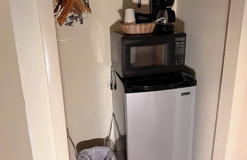 Perfect for larger families or groups, our Large Family Room offers extra space and comfort with a thoughtful layout. This accommodation features a main room with two double beds, plus an additional private bedroom with two more double beds, providing ample sleeping space and privacy for everyone. Enjoy the convenience of a private bathroom, flat-screen TV, microwave, refrigerator, and coffee maker. Whether you're unwinding after a day of adventure or enjoying a quiet morning, the stunning mountain view from your room adds the perfect touch to your stay