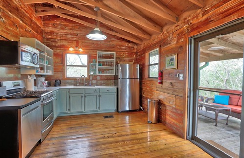 This unique and charming vacation rental located in the heart of the Blanco River Region of the Texas Hill Country sits conveniently located between two popular destinations. Wimberley, known for it’s abundance of artists and charming town square is only minutes away. Driftwood, home of the original Saltlick BBQ restaurant as well as several popular wineries and vineyards is just a few minutes in the other direction.