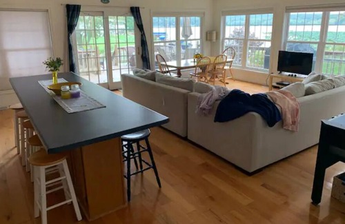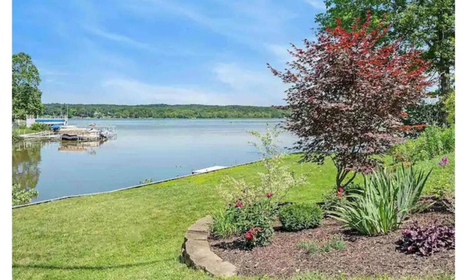 You are right on the water! Use of all non-motorized boats included: 1 double kayak, 1 single kayak, 3 kids kayaks, 1 paddle board, 1 canoe. Must use life vests for all water activities (all sizes provided). The "crib" described in the listing is a Pack-n-Play.