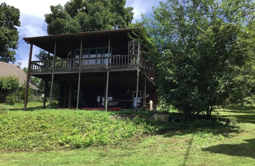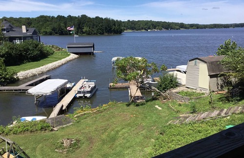 This old lake house sits on a hill at lakefront overlooking the greatest expanse of the lake from the living room and upper deck. It’s a short 11 mile drive to both Bloomington and Nashville Indiana. Bring your boat or use our kayaks at the house. Most of all bring your dog, we love dogs.