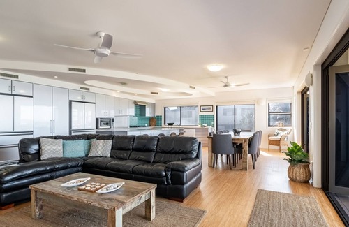 Lennox on the Beach 1, is a spacious five-bedroom ground-floor apartment accommodating 12-14 guests and offering an uninterrupted 180-degree vista of the sparkling ocean. Located on Seven Mile Beach in Lennox Head, only moments away from local eateries and shopping.