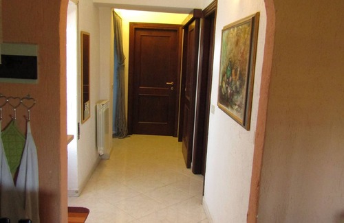 In the large and bright corridor a French window opens onto the balcony overlooking the town and the wide panoramic views of the Grosseto Maremma.