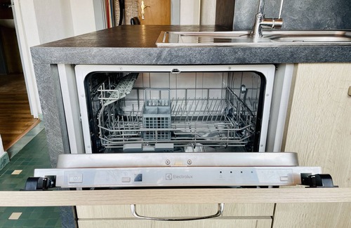 The kitchen is equipped with an oven, a refrigerator, and a dishwasher, as well as a coffee maker, an electric kettle, and a microwave. And thanks to the washer and dryer, you'll even be able to travel light. Other amenities include an ironing board, heating, and limited housekeeping.