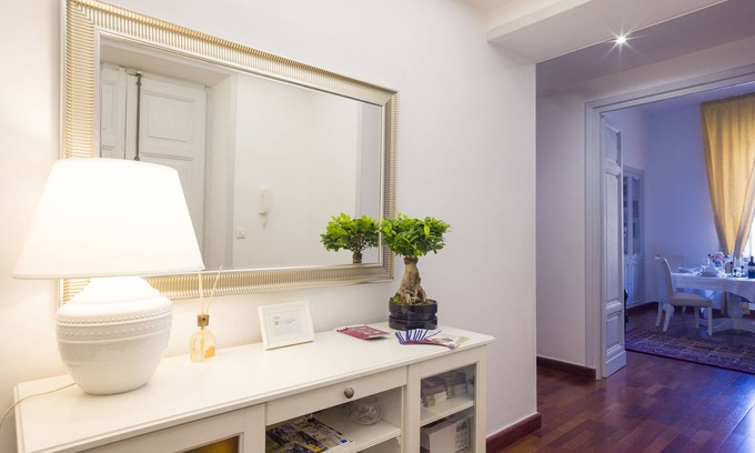 Between the Tiber island and piazza navona, on the 4th floor of a period building, leonardo suite navona is an elegant and welcoming 120m2 apartment, completely renovated, very bright, consisting of three bedrooms and two bathrooms. It accommodates up to eight people, 10 minutes from Piazza Navona, 5 minutes from the Pantheon and Piazza Venezia and ten minutes from Trastevere, all of which can be visited by walking. Free Wifi