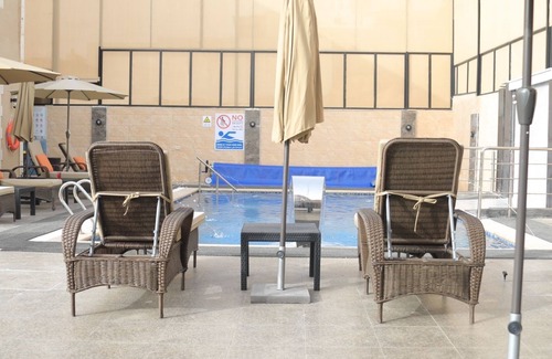 Does the Al-Maghtas ski chalet have a swimming pool?