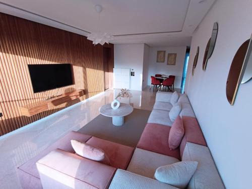 Les 3 Collines - Grand appart moderne à Guéliz avec vue et confort premium is located in Marrakesh, just 1.4 miles from Marrakesh Train Station and 1.7 miles from Majorelle Gardens. This property offers access to a balcony, free private parking, and free Wifi. The accommodation offers a 24-hour front desk, an elevator, and organizing tours for guests. Offering direct access to a terrace with mountain views, the spacious apartment consists of 2 bedrooms. The air-conditioned apartment also features a flat-screen TV, a fully equipped kitchen with an oven, a seating area, washing machine, and 2 bathrooms with a walk-in shower, a hot tub, and a bidet. For added privacy, the accommodation has a private entrance and is protected by full-day security. A mini-market is available at the apartment. A car rental service is available at the apartment. Yves Saint Laurent Museum is 1.9 miles from Les 3 Collines - Grand appart moderne à Guéliz avec vue et confort premium, while Djemaa El Fna is 2.7 miles away. Marrakech-Menara Airport is 3.1 miles from the property, and the property offers a paid airport shuttle service.