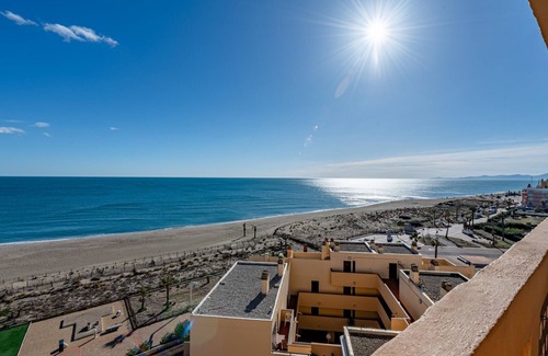 As part of the water restriction measures linked to drought in some of our departments, please note that the rental swimming pool may be closed by prefectural decree. Residence "Les Argonautes", 7 storeys. In the district of La Grande Plage, 50 m from the sea, 2.5 km from the lake, 50 m from the beach, direct access to the beach. For shared use: swimming pool angular (25 x 11 m, depth 150 - 220 cm, seasonal availability: 01.Jun. - 30.Sep.). In the complex: lift. Parking. Shop, grocery 80 m, supermarket 5 km, shopping centre, restaurant, bar, bakery, café 80 m, pedestrian zone 50 m, bicycle rental 80 m, bus stop "Lydia" 100 m, railway station "Perpignan" 22 km, sandy beach 50 m, diving center 5 km, outdoor swimming pool 7 km, nudist beach 10 km. Sports harbour 7 km, surf school 2 km, sailing school 3 km, tennis 3 km, indoor tennis centre 3 km, minigolf 2.5 km, riding stable 12 km. Nearby attractions: Aqualand Port Leucate 5 km, Réserve Africaine de Sigean 41 km, Parcours Aventure 5 km, cinéma 1.4 km, Téleski nautique site des dosses 5 km, Spot de windsurf 4 km. Well-known lakes can easily be reached: Etang de Leucate ou Salses 3 km, Lac de Villeneuve de La Raho 34 km. Hiking paths: Sentier du guetteur 8 km, La forteresse de salses 15 km, Sentier du littoral Collioure 40 km. Please note: entertainment in the season.