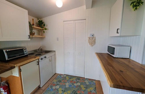 Inside Chalet 3, you'll find a welcoming space. The kitchen is equipped with everything you need to prepare delicious meals. Whether you're cooking a gourmet meal or just warming up a cup of coffee, you'll find everything you need close at hand.