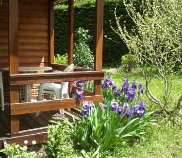 Food & DrinkChocolate/Cookies, Tea/Coffee makerBathroomShampoo, Private bathroom, Shower, Toilet paper, Toilet, Bathtub or shower, Free toiletries, Body soapMedia & TechnologyFlat-screen TV, Satellite channels, TVGeneralHardwood or parquet floors, Fire extinguisher, Heating, Key access, Trash cans, Ironing facilities, Smoke Alarm, Iron, Soundproof, Fan, Private entranceKitchenStovetop, Microwave, Refrigerator, Toaster, Kitchenware, Kitchen, Cleaning products, Dining table, Wine glasses, Coffee machine, Kitchenette, Electric kettleOutdoorsBarbecue, Outdoor furniture, Outdoor dining area, Terrace, BalconyLiving AreaSofa, Dining area, Sitting areaBedroomWalk-in closet, Wardrobe or closetViewGarden view, View, Mountain viewAccessibilityEntire unit located on ground floorBuilding CharacteristicsDetachedRoom AmenitiesSofa bed, Fold-up bed, Socket near the bed, Drying rack for clothing, Hypoallergenic pillow, Non-feather pillow, Clothes rackEntertainment & Family ServicesBooks, DVDs or music for children |