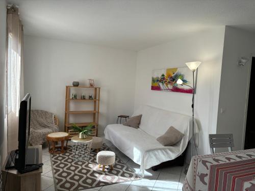 Les clés de Jonzac-conciergerie Nid de Douceur offers accommodations in Ozillac, 30 miles from Saint Pierre Cathedral and 31 miles from Abbaye aux Dames. This vacation home provides free private parking, private check-in and check-out, and free Wifi. Staff on site can arrange a shuttle service. This vacation home includes 1 bedroom, a living room and a flat-screen TV, an equipped kitchen with a dining area, and 1 bathroom with a bath and a washing machine. Guests can enjoy a meal on an outdoor dining area while overlooking the garden views. The accommodation is non-smoking. Guests at the vacation home can enjoy walking tours and bike tours nearby, or make the most of the garden. Cognac Golf Course is 27 miles from Les clés de Jonzac-conciergerie Nid de Douceur, while Île de Patiras is 27 miles away. Bordeaux–Mérignac Airport is 59 miles from the property.