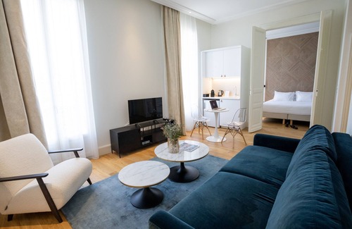 Each apartment features a kitchenette with a microwave, plus free WiFi and an LED TV with satellite channels. Thoughtful touches include an espresso maker and bathrobes, and also available are a pillowtop bed and a minibar.