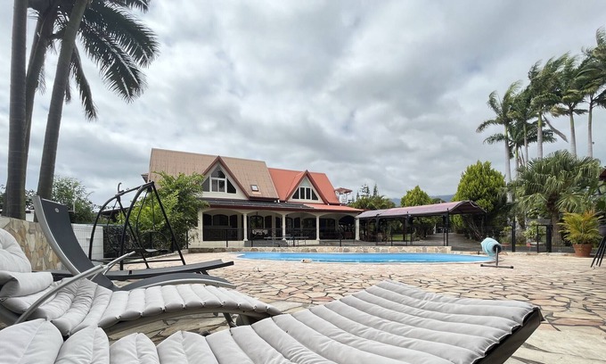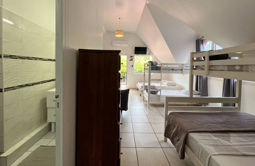 Premium Immobilier presents the studio les Cyprès, guest room at Villa Lyse, for 7 people, located in an exceptional property in Saint-Benoit on Reunion Island, in the green district of Sainte-Anne, halfway up, in the middle of the cane fields.