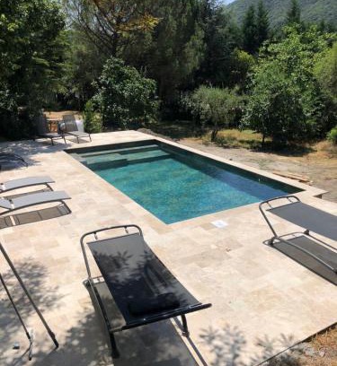 Offering mountain views, Les Dames de Saint Florent in Saint-Florent-sur-Auzonnet offers accommodations, a tennis court, and a shared lounge. The guest house, set in a building dating back to 19th century, is 26 miles from Pont d'Arc and 27 miles from Ardeche Gorges. There's a sun terrace and guests can access free Wifi and free private parking. At the guest house, units are equipped with a wardrobe, a flat-screen TV, a private bathroom, bed linen, and towels. Rooms are equipped with a coffee machine, while some have a balcony. The rooms are equipped with heating facilities. A selection of options including fresh pastries, fruit, and juice are available for the continental breakfast. There is a coffee shop, and packed lunches are also available. Guests can make the most of the garden, pool with a view, and yoga classes offered at the guest house. You can play darts at Les Dames de Saint Florent. If you like to discover the area, cycling, hiking and walking tours are possible in the surroundings and the accommodation can arrange a bicycle rental service. The Casino Fumades les Bains is 8.6 miles from Les Dames de Saint Florent, while Paiolive Wood is 19 miles from the property. Nimes-Ales-Camargue-Cevennes Airport is 43 miles away.